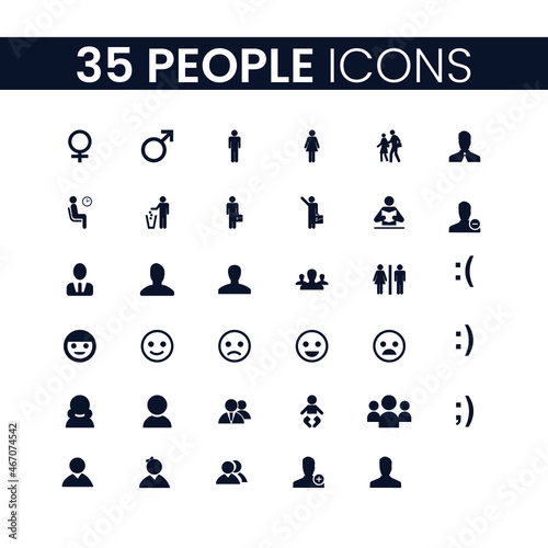 35 People Icons Set. People Icons Pack. Collection of Icons. Editable vector stroke.