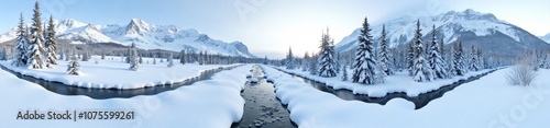 360 degree photo, Snow-Covered Mountain Valley, A 360-degree image