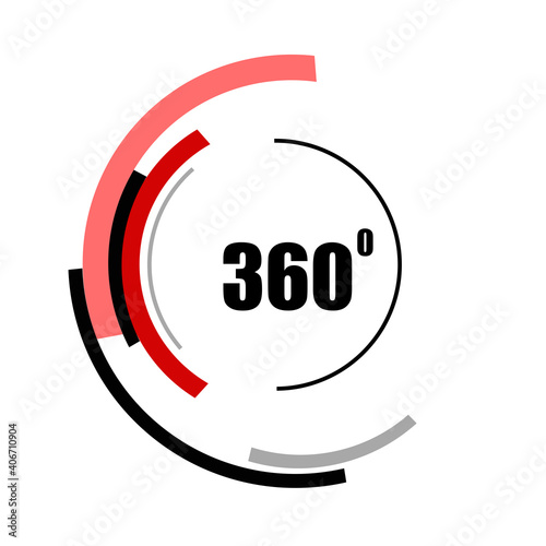 360 degrees icon isolated on white background. 360 degrees logotype design concept with colorful lines. Angle 360 rotate icon