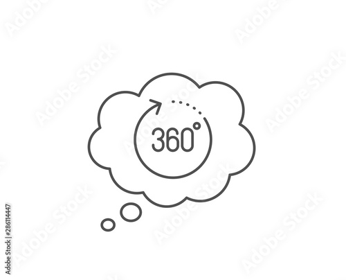 360 degrees line icon. Chat bubble design. Panoramic view sign. VR technology simulation symbol. Outline concept. Thin line 360 degrees icon. Vector