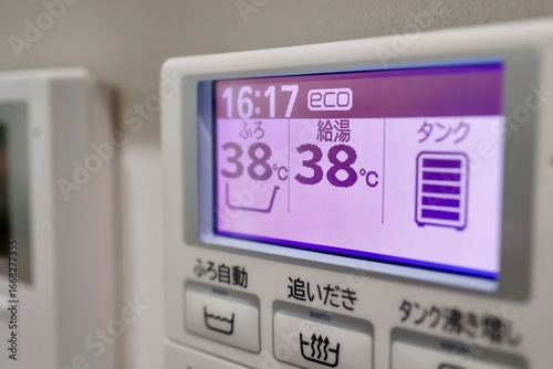 給湯器の液晶パネルに設定された38度のお風呂温度表示