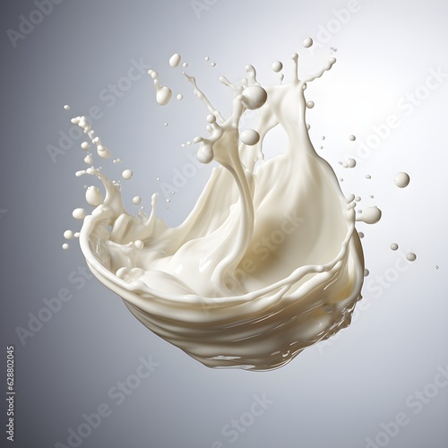 3d illustration of milk or white cream splash isolated on white background created with Generative AI technology