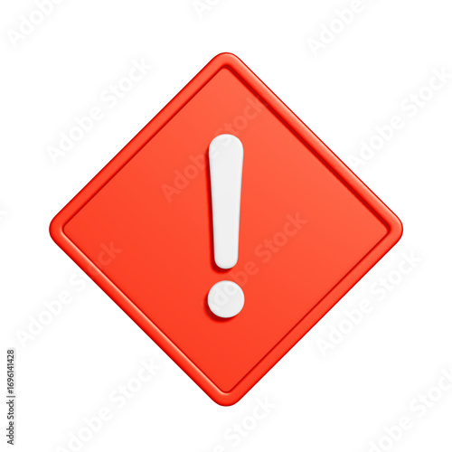 赤い菱形の注意マークの3Dアイコン