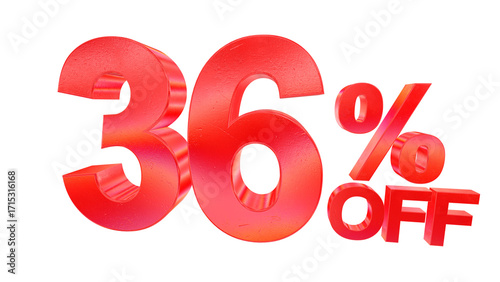 3D 36 percent off sale typography with dark red metallic style and rainbow effect isolated on a transparent background. Visual element for promotions and graphic design.