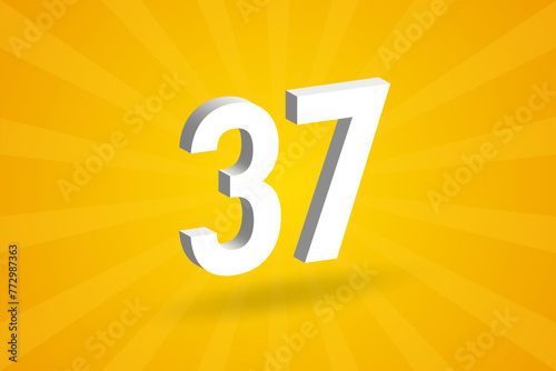 3D 37 number font alphabet. White 3D Number 37 with yellow background