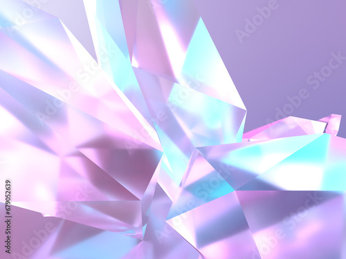 幻想的な光に照らされたクリスタルガラスの結晶の3Dイラスト