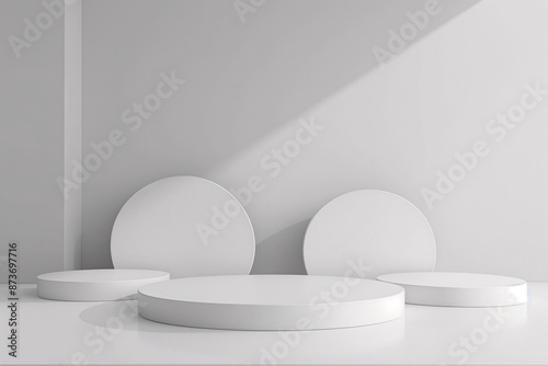 3d abstract background white podium for product presentation and brand advertising with shadow of windows, Empty scene for mock up