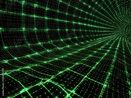 3D Abstract Green Grid Tunnel Creates Stunning Visual Effect Seamlessly