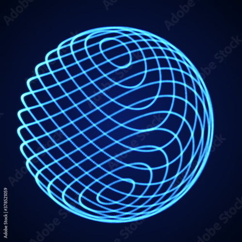 3d abstract sphere of particles. Twisted lines of sphere on dark background. Science and technology design. 3d