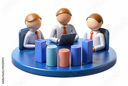 3D AI Powered Business Strategy Meeting: Team Implementing AI Tools for Growth in Modern Office Environment on White Background