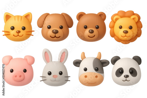3d animal faces icons set – playful, cute and charming emoji-style designs