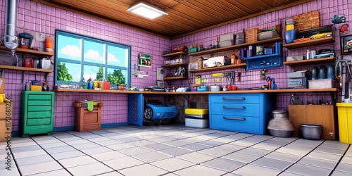3D anime car repair shop small business owner