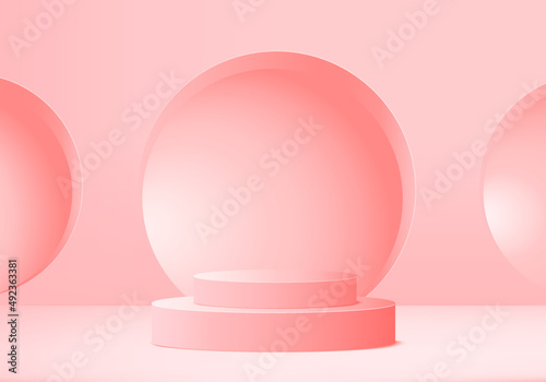 3d background products display podium scene with geometric platform stand to show cosmetic products. Stage showcase on pedestal display pink studio