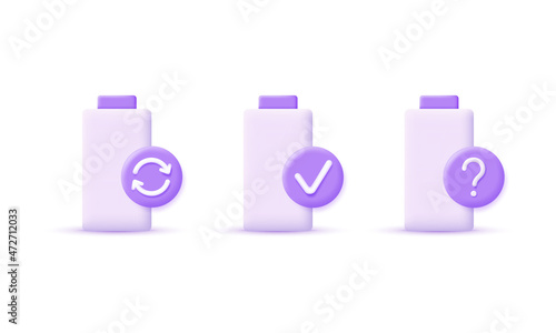 3d battery icon set. Vector illustration in 3d style. Trendy icon for web design