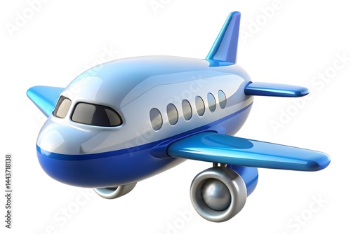 3D Blue and Silver Airplane Icon for Global Travel and Aviation Adventure