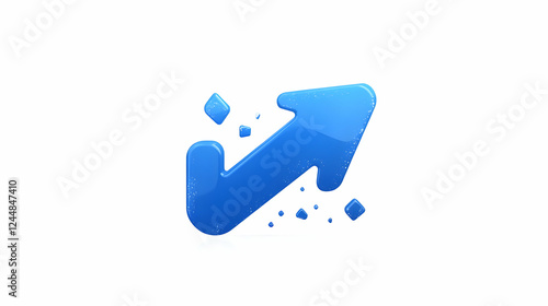 3D Blue Arrow Points Upward with Disintegrating Pixels on White Background