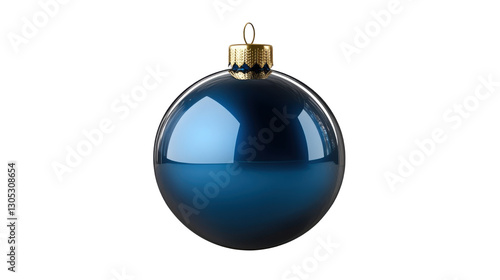 3D blue Christmas ornament ball with a shiny isolated on white background