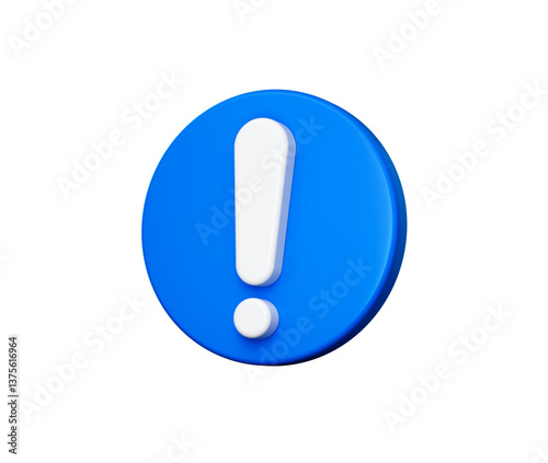 3D Blue icon with a white Exclamation mark for alert, warning or important notice. 3d illustration