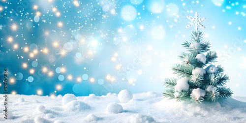 3D Bokeh Snowfall Concept: Soft White and Blue Bokeh Background Creating a Magical Christmas Atmosphere with Copy Space for Text