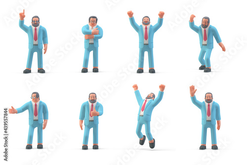 3D Business Man People standing in different Poses. Men Group set 3D illustration