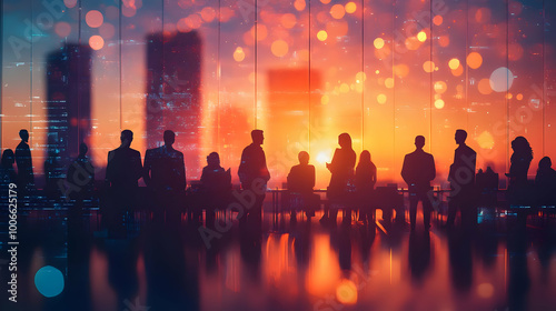 3D Business Meeting Silhouette Over Bokeh Background with Financial Symbols for Corporate Marketing - Ideal for Collaboration & Planning Visuals