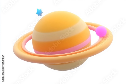 3D cartoon gas giant rings with Saturn gold and ammonia pink, ultra-high-definition design with detailed elements on a white background, perfect for space and cosmic art themes.