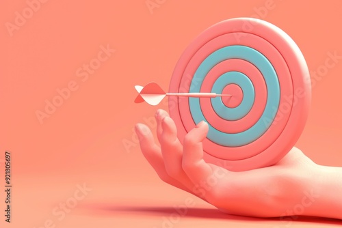 3D Cartoon Hand Holding Bullseye Target - Conceptual Image for Accuracy and Goal Achievement