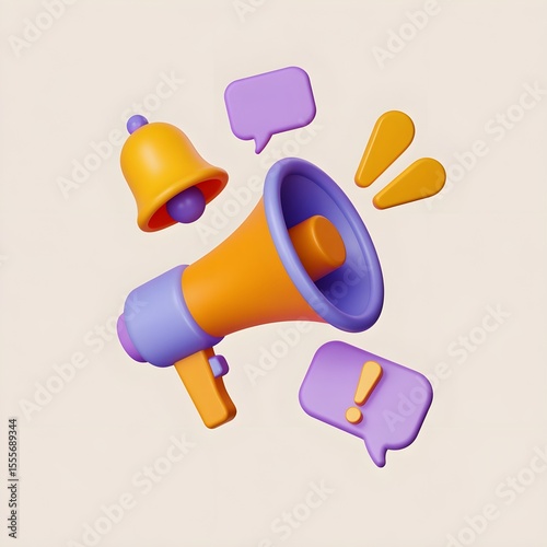3D Cartoon Megaphone Icon with Notification Elements on Clean Background