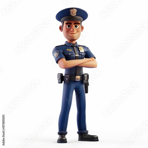 3D cartoon of professional smiling Police officer standing isolated on white background,