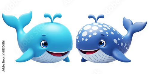 3D cartoon pair of cute whales isolated on transparent background, PNG file add