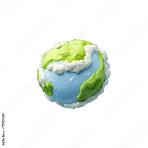 3D Cartoon Representation of Earth with Green Land and Blue Water