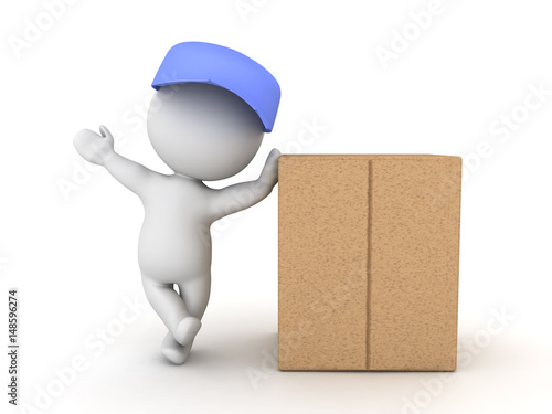 3D Character leaning on cardboard box package