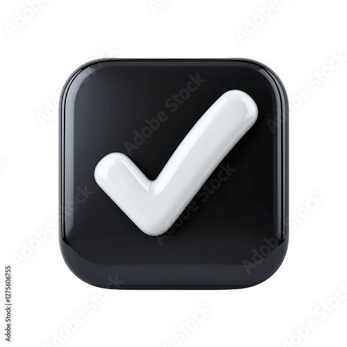 3D Check Mark Icon in Black Square Button Isolated on Transparent Background