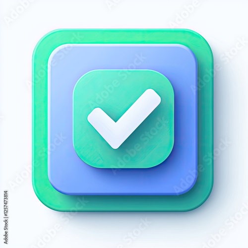 3D Checkmark Icon, Teal & Lavender, Isolated
