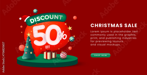 3D Christmas ornament discount 50 pencent off with red and green color website banner