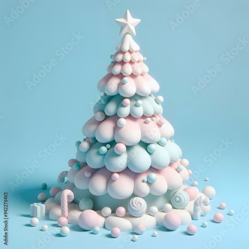 3D Christmas Tree - Isolated on Blue Pastel Background