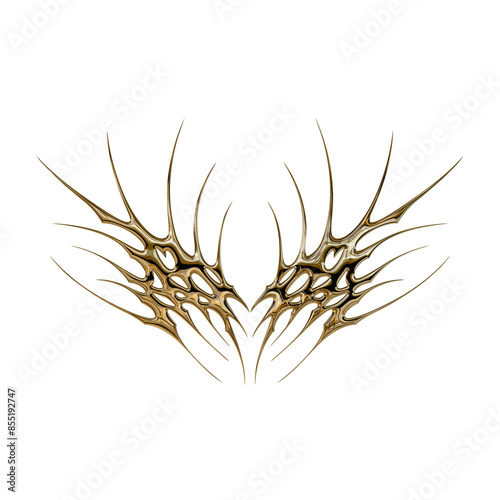 3d chrome metal effect neo tribal y2k gothic style tattoo. Cyber sigilism heart design.