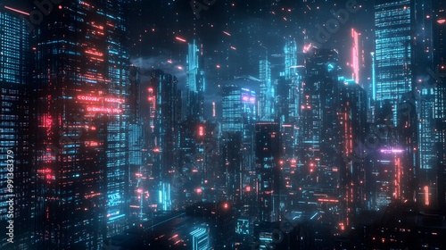 3D cityscape with glowing digital connections, representing the power of technology in urban development