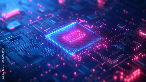 3D Cloud technology background with a hologram icon and data center on a blue background, Generative AI