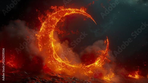 3D Crescent Moon Illuminating a Colorful Night Sky