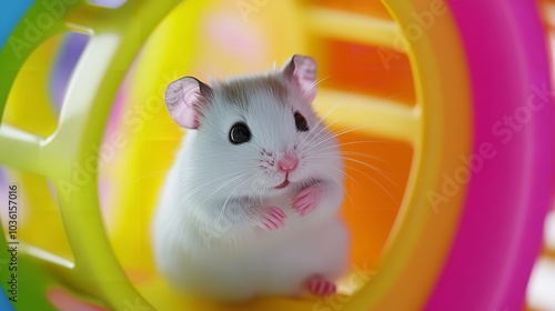 3D Cute Baby Hamster in a Pastel-Colored Wheel