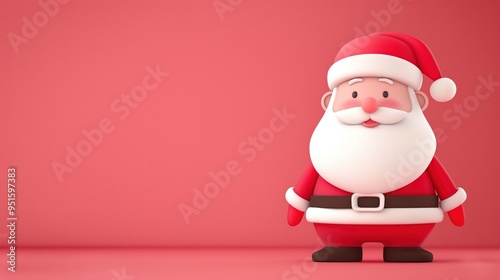 3d cute cartoon Santa Claus character isolated on solid pastel red background, minimalistic style, copy space concept.