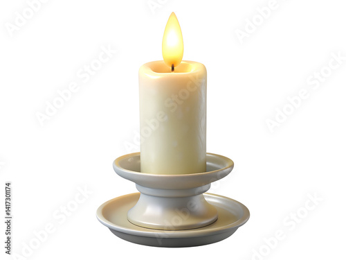 3D Decorative Candle with White Holder, 3D Illustration, 3D Rendering, 3D Icon