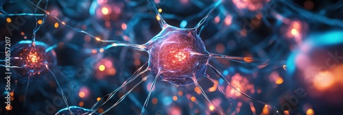 3D diagram of cyberspace nanotechnology Neon light cell network