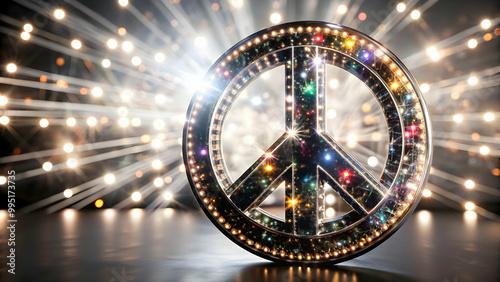 3D Digital Glowing Peace Sign Icon: Vibrant Abstract Light Burst Symbolizing Peace & Equality for Human Rights Day - Modern Futuristic Design