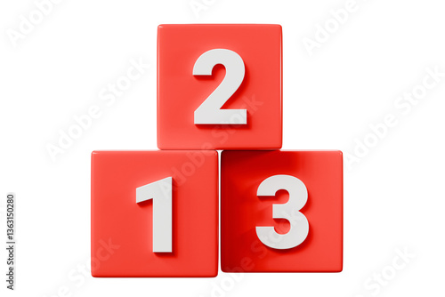 3d Education Blocks icon. Preschool number 123 block. 123 education cube brick concepts. School learns child play toy sign and kid math count box simple study isolated on white background. 3d render.