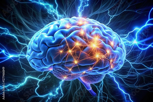 3D Electric Brain: Neurological Lightning Storm, Night Photography