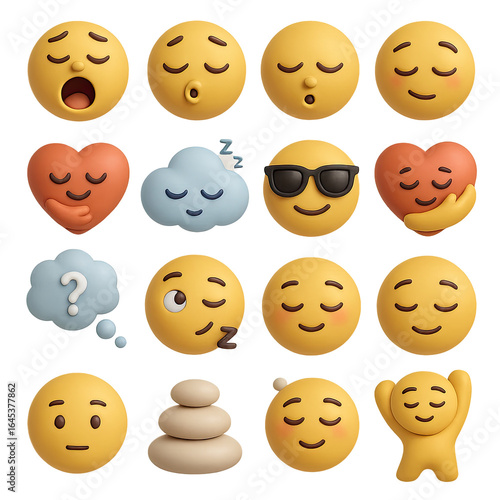 3d emoji icon set featuring sleepy, love, cloud, and sunglasses faces