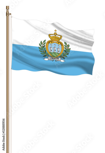 3D Flag of San Marino on a pillar blown away isolated on a white background.