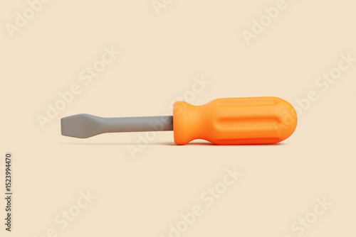 3D Flathead Screwdriver with Orange Handle on Beige Background